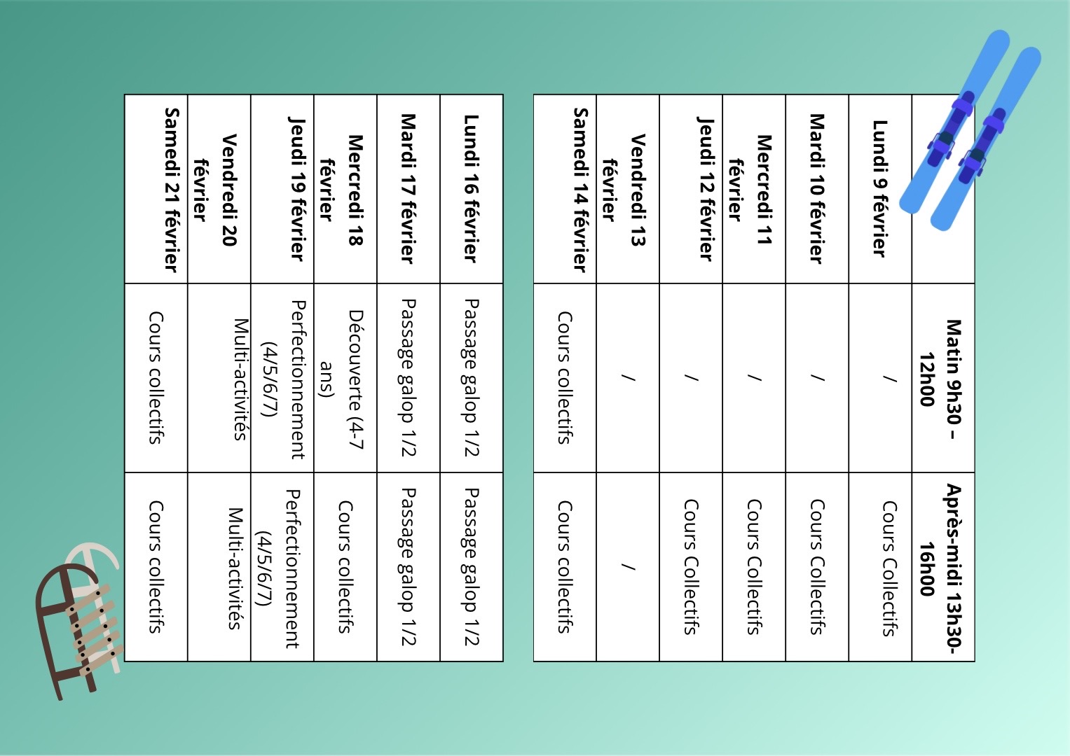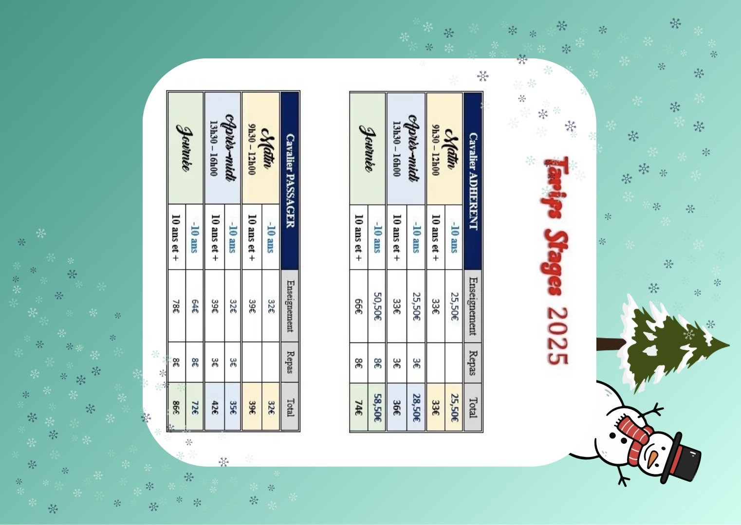 Nous dispensons des stages toutes disciplines, à la demi-journée, à la journée, ou à la semaine avec et sans hébergement. Ces stages sont proposés pendant la période de la Toussaint, la période de Noël, la période de Pâques ou la période estivale. Vous pouvez consulter les tarifs des stages pour vous informer sur les modalités d’inscription.
